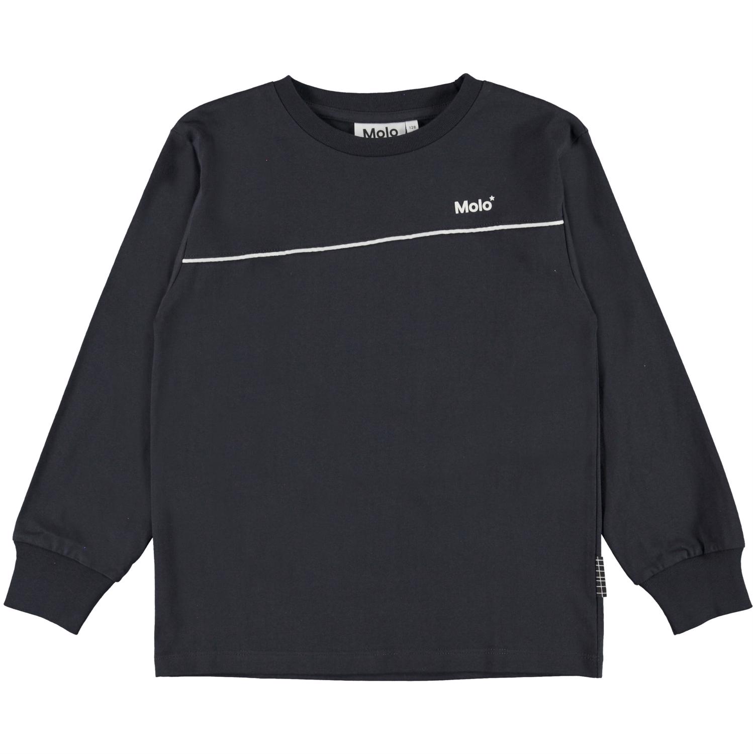 Rasmono är en mörkblå långärmad tröja med en Molo-logo.