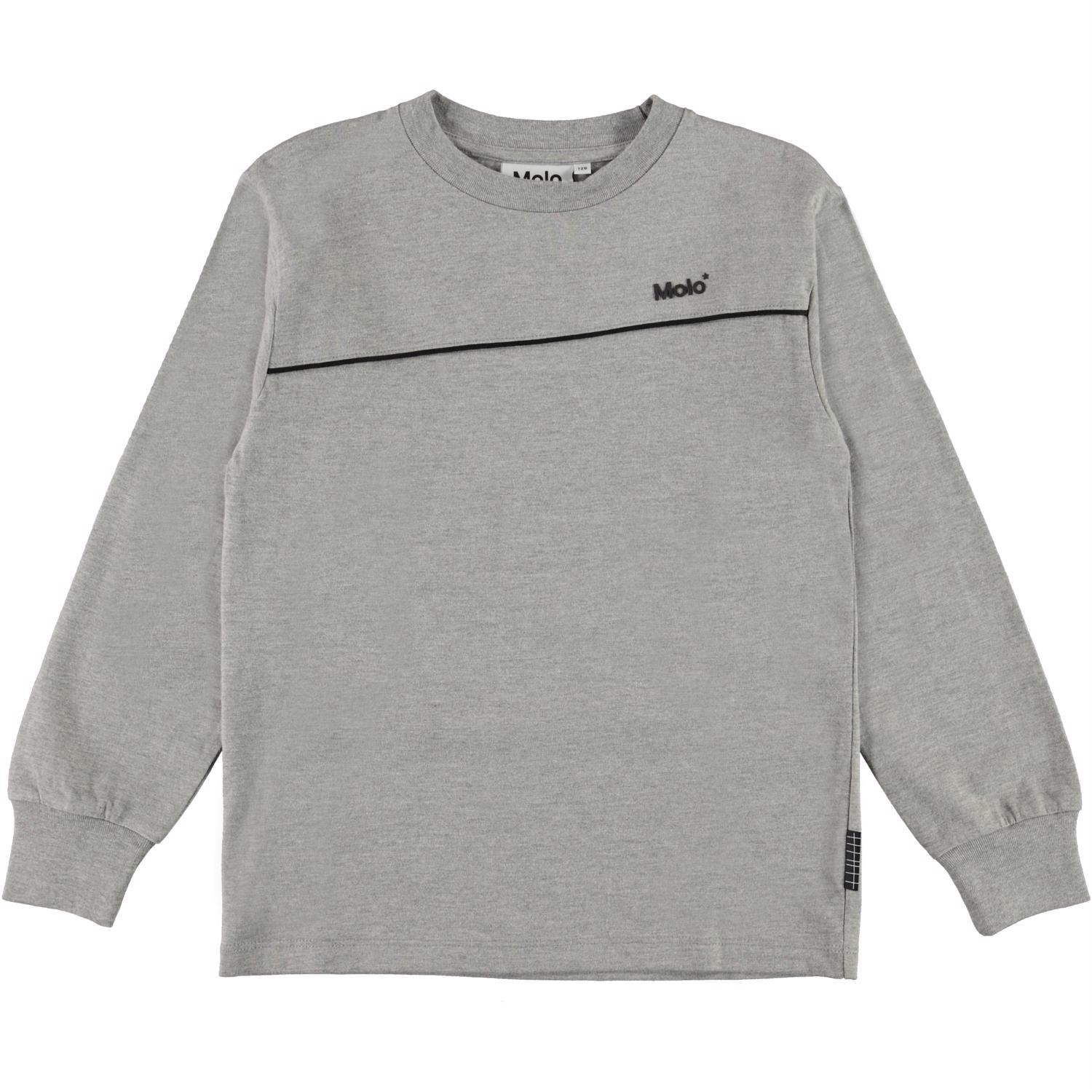 Rasmono är en grå långärmad tröja med en Molo-logo.