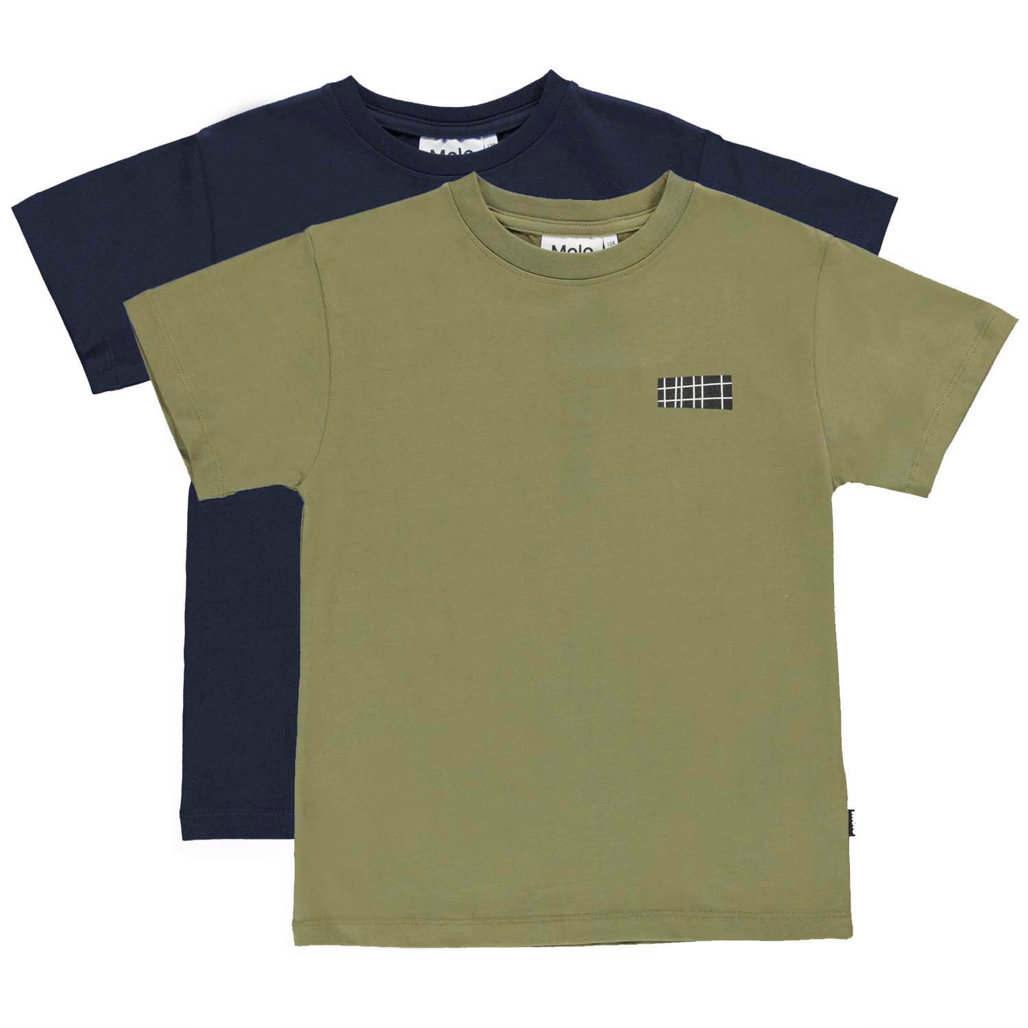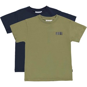 Rasmus är Molo´s nya basic t-shirt med logomönster på vänster sida. Här är t-shirten i ett 2-pack med en grön och en mörkblå.