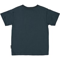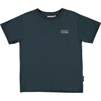 Rasmus är den perfekta t-shirten som du aldrig får nog av. T-shirten är mörkblå med en logo på vänster sida.