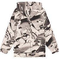 Ratata är en ofärgad luvtröja med svart mönster, i 100% ekologisk bomull. Mönstret är ett 2-tonat abstrakt mönster som visar breakdansare och bilar på gatan, och på den ena ärmen är där en lila text där det står "On Fire". Ratata har långa ärmar, luva, bred ribbkant vid ärmslut och höfter, en känguruficka framtill och en normal passform.