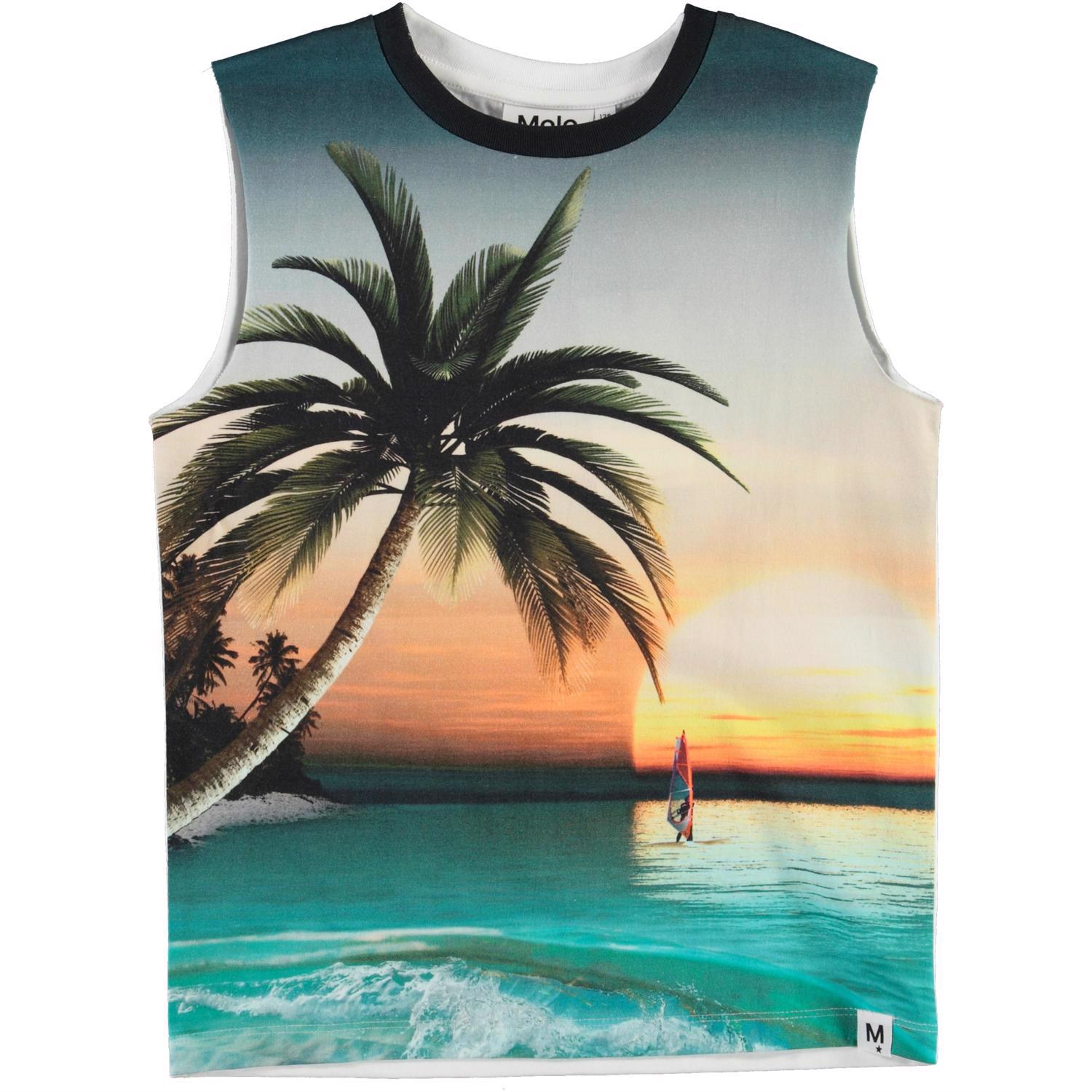 Ray är ett brett linne som ger äkta surfarstämning med strand, palmer och solnedgång. På baksidan står texten "Off Shore". Linnet är i 100% bomull.
