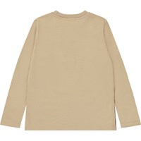 Beige långärmad t-shirt med en björnfamilj som ser ut att leta efter något. Kanske sina vänner, eller en härlig honungsburk? Vad tror du? Denna långärmade t-shirt är tilverkad i 100% ekologisk bomull, har rund hals med ribbkant, ribbkant vid ärmslut och höfter, samt en normal passform.