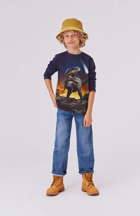 Reif är en långärmad mörkblå t-shirt med en stor dinosaurie framtill.