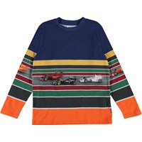 Reif är en färgglad och randig t-shirt med racerbilar på. Tröjan har långa ärmar.