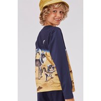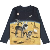 Reif är en långärmad mörkblå t-shirt med olika djur ute i rymden.