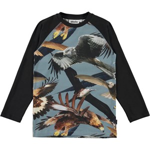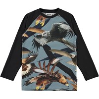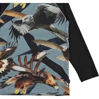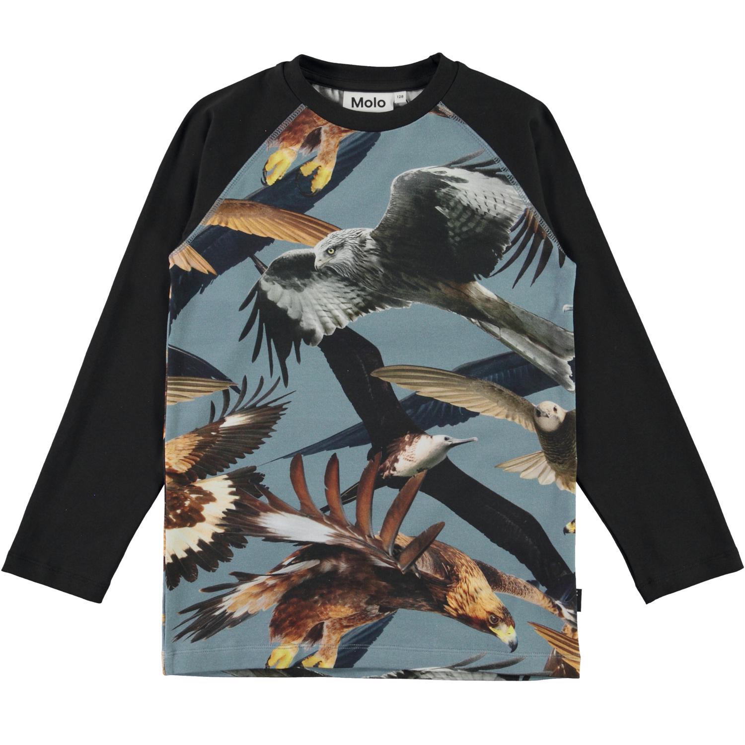 Remington är en svart raglantröja med långa ärmar. Här med ett tryck av stora rovfåglar.
