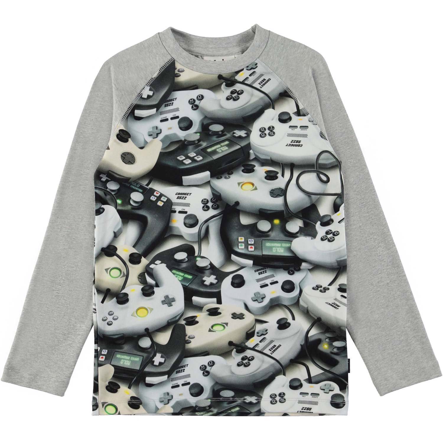 Remington är en grå långärmad T-shirt med mönstret "Connected". Remington är grå raglanärmar och hals. På bröstet och ryggen ses handkontroller i massor så att alla vännerna kan vara med.