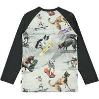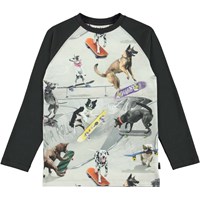 Har du någonsin tänkt på vad hundar gör när de är ensamma? På den långärmade T-shirt Remington med mönstret "Doggy Town" får du svaret. Här skater de olike hundarna runt på sina skateboards, gör ollie och har roligt medan de jagar varadra runt på ramperna. Remington har svarta raglanärmar och hals.