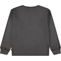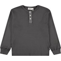 Grå långärmad tröja i mjuk ekologisk bomull med rund hals och tre knappar framtill.