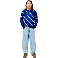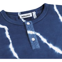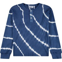Blå och vit batikfärgad långärmad tröja i mjuk ekologisk bomull med rund hals och tre knappar framtill.