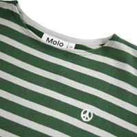 Bretonrandig grön och offwhite långärmad tröja i mjuk ekologisk bomull med långa ärmar. Tröjan med långa ärmar har en lös passform med en liten broderad fredsduva på bröstet.