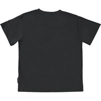 Riley är en svart t-shirt med ett foto som visar regnbågen på himlen.