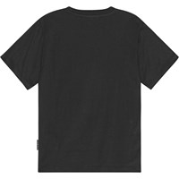 Svart ekologisk bomullst-shirt med korta ärmar och rund hals med ribbstickad kant. T-shirten har en lös passform och en tryckt design på framsidan. Trycket är inspirerat av gammaldags pixel- och skärmbilder med referenser till gamla arkadspel och Tetris, där små figurer dyker upp längst upp och rör sig nedåt.