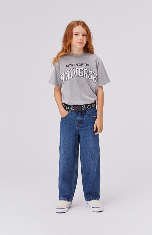 Riley är en gråmelerad t-shirt med texten ´Citizen of the universe´ framtill.