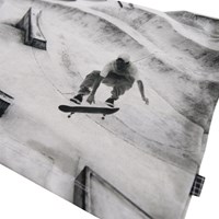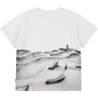 Vit T-shirt i mjuk ekologisk bomull med korta ärmar och en ribbad halsringning. T-shirten har en lös passform med en skatepark som fortsätter på baksidan.