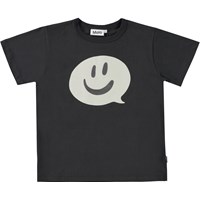Svart t-shirt med en pratbubbla som säger glada och bra saker. Denna t-shirt är tillverkad i 100% bomull, har korta ärmar, rund hals med ribbkant och lös passform.