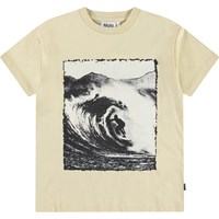 Ljusblå t-shirt i mjuk ekologisk bomull med korta ärmar och ribbad halsringning. T-shirten har en lös passform med en svart/vit bild av flygande UFO:er.