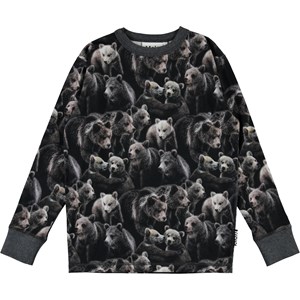 Den långärmade t-shirten Rill har ett all-over tryck med en stor björnflock. Rill har ett mörkgrått kantband vid urringningen, samt en mörkgrå ribbkant vid ärmarna.