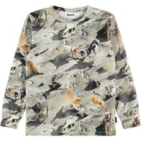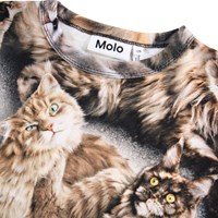 Långärmad tröja i mjuk ekologisk bomull med ribbad halsringning och ärmslut. Tröjans långa ärmar har en normal passform med katter i gyllene bruna färger.