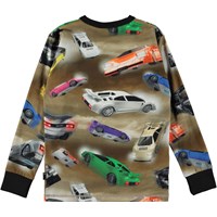 Rill är en långärmad tT-shirt i mönstret "Flip It". Här ses racerbilar i hög fart, några är så snabba att de vält. De racer ikapp på Rill, som också har en svart ribbkant i halsen och vid ärmslut.