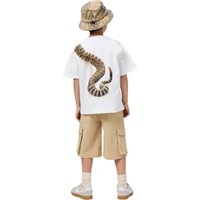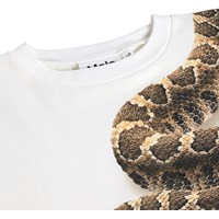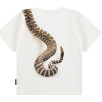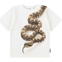 Vit T-shirt i mjuk ekologisk bomull med korta ärmar och ribbad halsringning. T-shirten har en lös passform med en pytonorm.