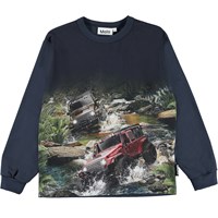 Rin är en mörkblå tröja med jeepar som kör offroad.