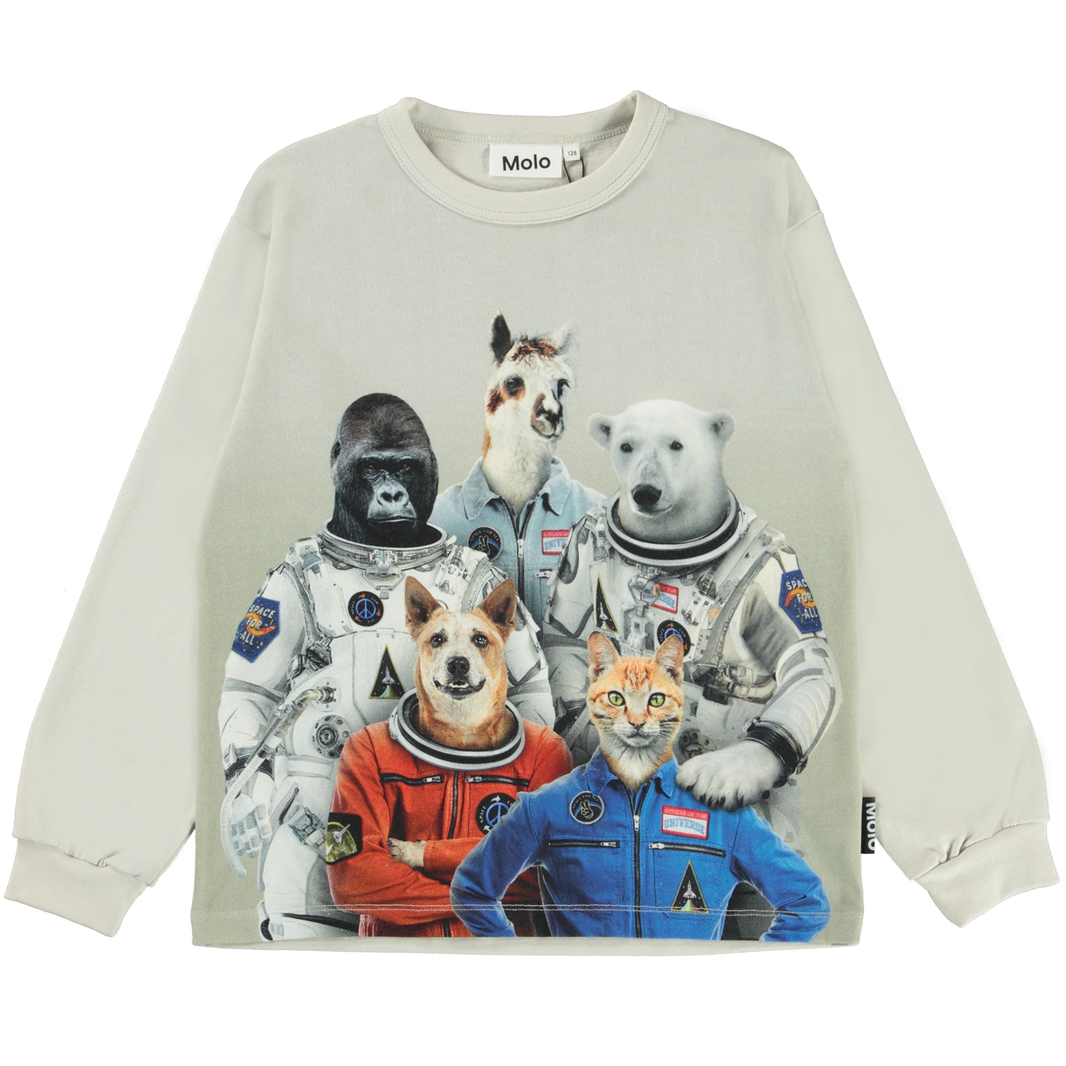 Rin är en offwhite långärmad tröja med olika djur i rymden.