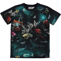 Dyk ner under havsytan och se vad som återspeglas i trycket på T-shirten Rashi. På t-shirten ser du flera olika fiskar och kanske till och med en haj. T-shirten har en rund urringning.