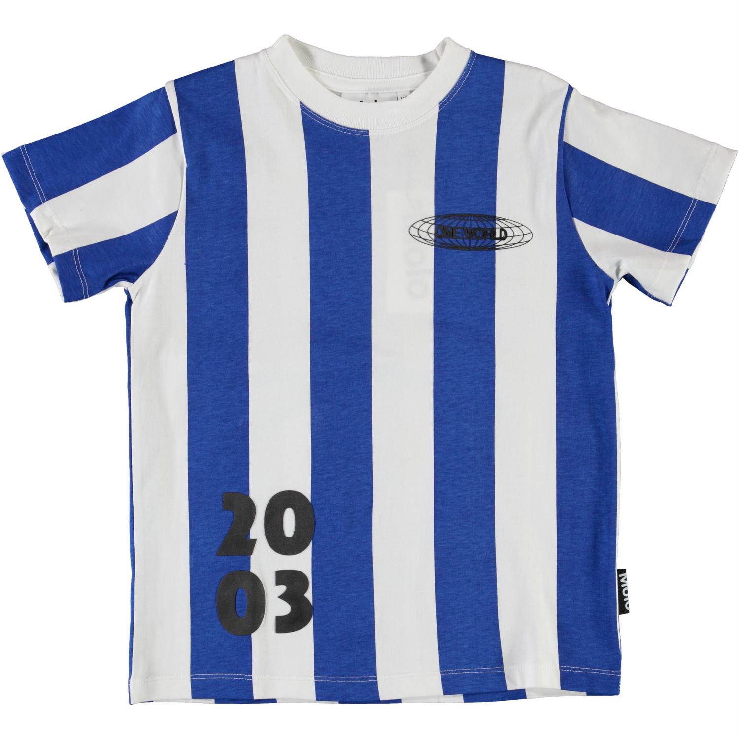 Road är en t-shirt med blå och vita ränder och retro fotbollsreferenser..
