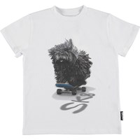 På den vita T-shirten Road i mönstret "Dog on a Roll" gäller det att komma ur vägen för hunden som racear iväg på skateboarden.