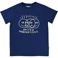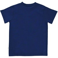 Road är en mörkblå T-shirt med vitt placeringstryck på bröstet.
