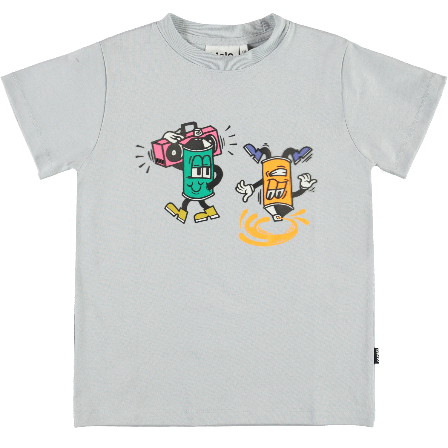 Road är en grå-blå T-shirt med två sprayflaskor som breakdansar och lyssnar på en boombox.
