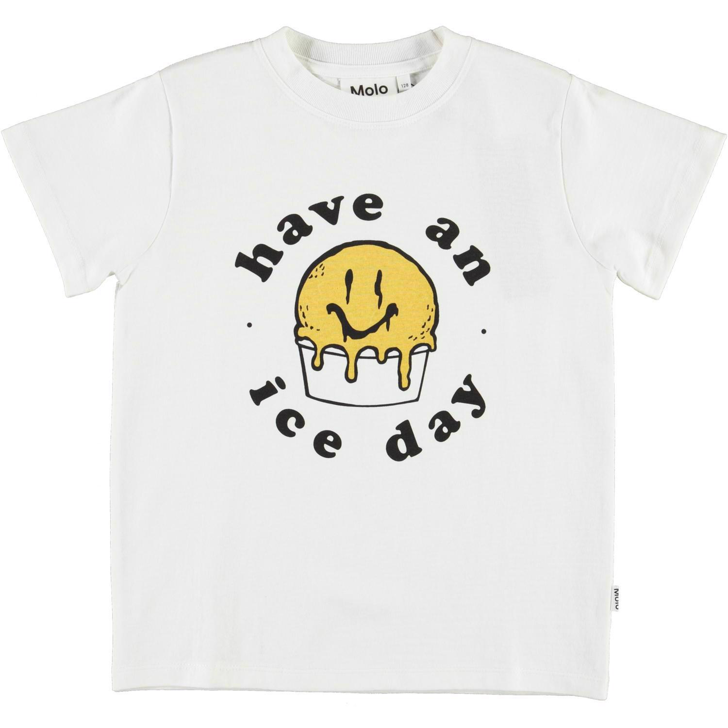 Road är en vit T-shirt med en bägare med en smältande, glad och gul glasskula på bröstet, som säger till dig att du ska "have an ice day".