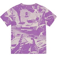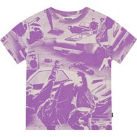 Rodney är en ofärgad t-shirt, med lila mönster, i 100% ekologisk bomull. Mönstret är ett 2-tonat abstrakt mönster, som visar breakdansare och bilar på gatan. Rodney har rund hals med ribbkant och en oversized passform. Detta plagg har en oversized passform. Önskar man en mer normal passform, rekomenderar vi att man tar en mindre storlek än man brukar. Detta gäller också, om barnet är mallen två storlekar.