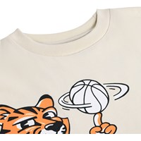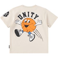Beige T-shirt i ekologisk bomull med korta ärmar och ribbad halsringning. T-shirten har en lös passform och basketinspirerade mönster samt texten 'Unity'.