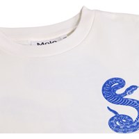 Vit T-shirt i ekologisk bomull med korta ärmar och ribbad halsringning. T-shirten har en lös passform med en kobrasnok.
