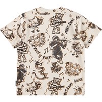 Beige T-shirt i ekologisk bomull med korta ärmar och ribbad halsringning. T-shirten har en lös passform med djur som spelar musik.