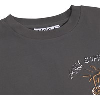 Grå T-shirt i ekologisk bomull med korta ärmar och ribbad halsringning. T-shirten har en lös passform med en tiger på en elgitarr.