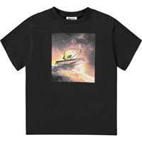 Svart T-shirt i ekologisk bomull med korta ärmar och rund hals med ribbstickad kant. T-shirten har en oversized passform och ett placerat tryck på framsidan. Trycket är inspirerat av James Webb-rymdteleskopet och visar ett teleskop i rymden med en bit av jorden bakom det. Tänk dig vilka bilder det kan skicka tillbaka till jorden.