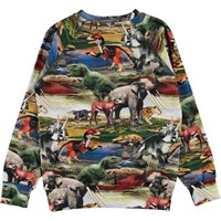 Romeo är en tröja med tryck från det förflutna och djur i vackra gröna och röda färger. Romeo har raglanärmar samt ribbad nederkant och ribbade ärmslut.