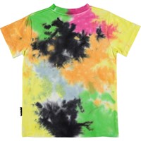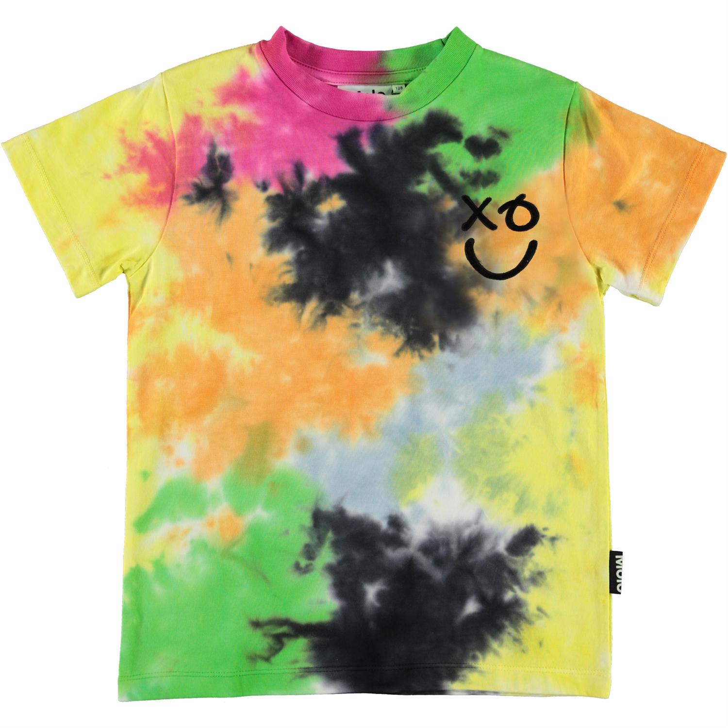 Roxo är en flerfärgad t-shirt där färgerna ser ut som de sprayats på. Roxo har korta ärmar och en rund halsringning.