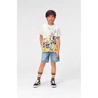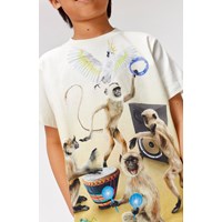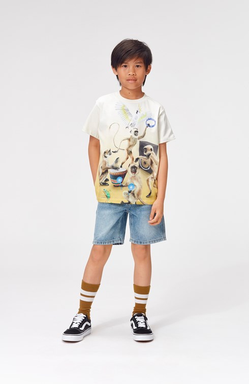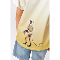 Roxo är en T-shirt med mönstret "Dancing Monkeys". Här går aporna helt bananas och spelar spel och aptrick på både fram- och baksida.