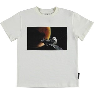 Roxo är en vit t-shirt med en satellit som kretsar kring Mars.