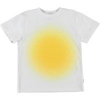 Roxo är en vit t-shirt med en skinande sol, med korta ärmar och rund hals.