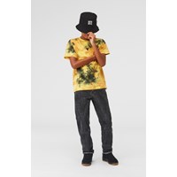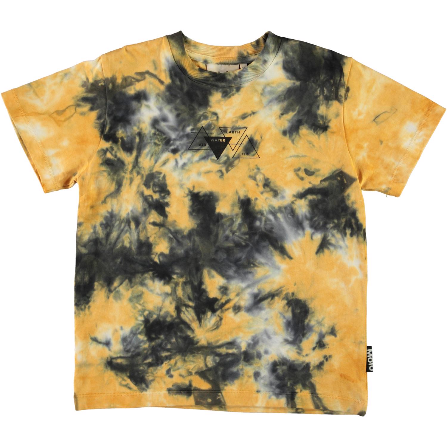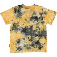 Roxo är en cool t-shirt med ett batikfärgat tryck i gult och svart.
