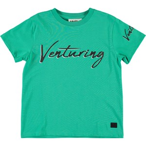 Roxo är en turkos t-shirt med trycket 'Venturing' både fram och på vänstra ärmen. Roxo är i 100% bomull och har korta ärmar.