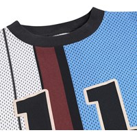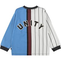 Blå och vit, långärmad tröja i mjuk ekologisk bomull med ribbade kanter runt halsen och ärmarna. Tröjan har en lös passform och en sportig basketinspirerad look med nummer 11 på ryggen och texten 'Unity'.