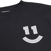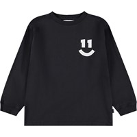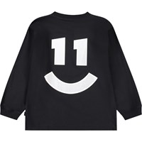 Svart, långärmad tröja i mjuk ekologisk bomull med ribbade kanter runt halsen och ärmarna. Tröjan har en lös passform med en smiley med nummer 11.