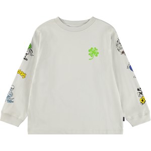 Beige långärmad tröja i ekologisk bomull med ribbad halsringning och ärmar. Tröjan har en lös passform med utomjordingar och katter på skateboard samt roliga och söta uttalanden längs ärmarna.